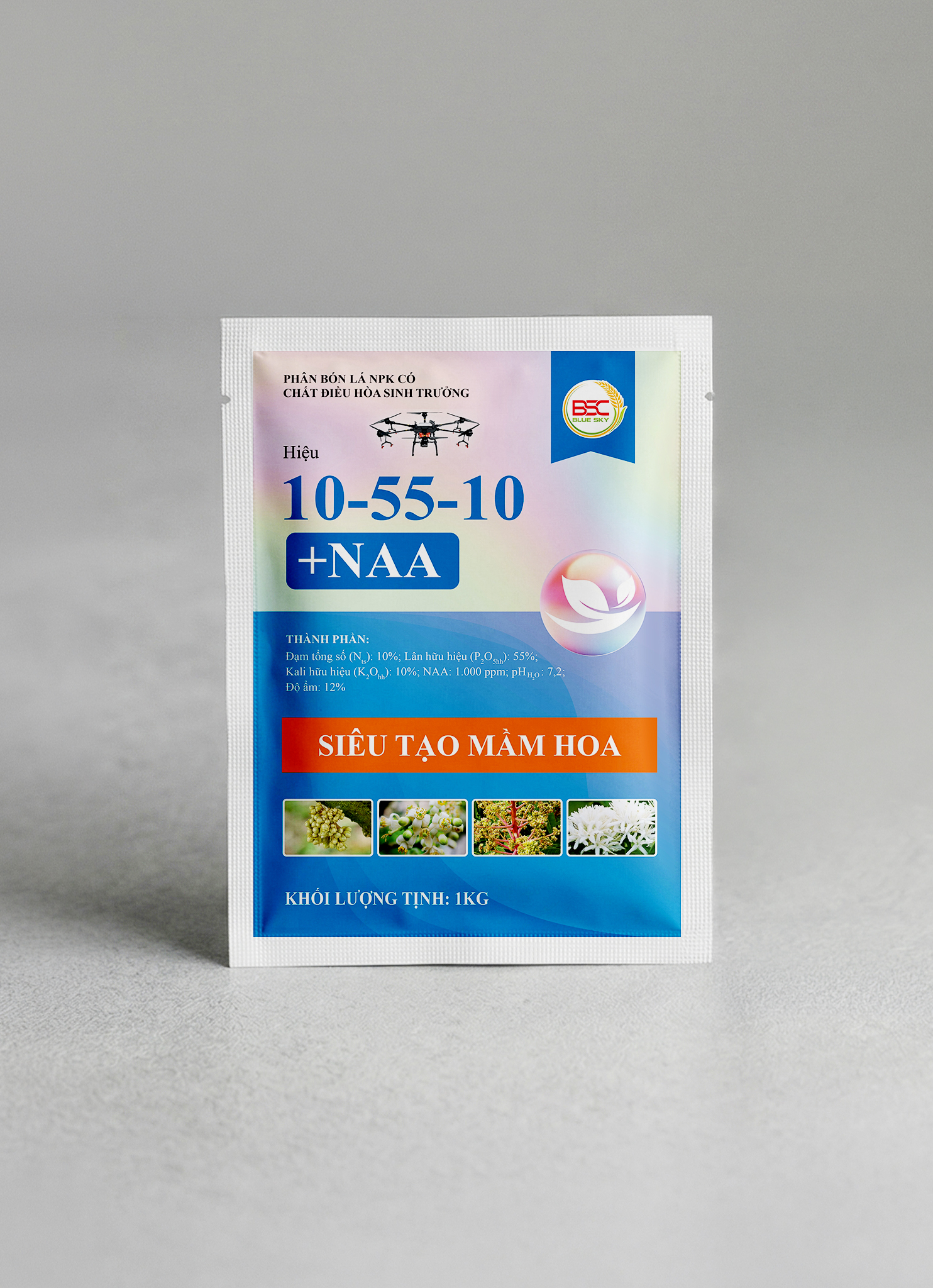• PHÂN BÓN LÁ NPK CÓ CHẤT ĐIỀU HÒA SINH TRƯỞNG 10-55-10 +NAA: SIÊU TẠO MẦM HOA