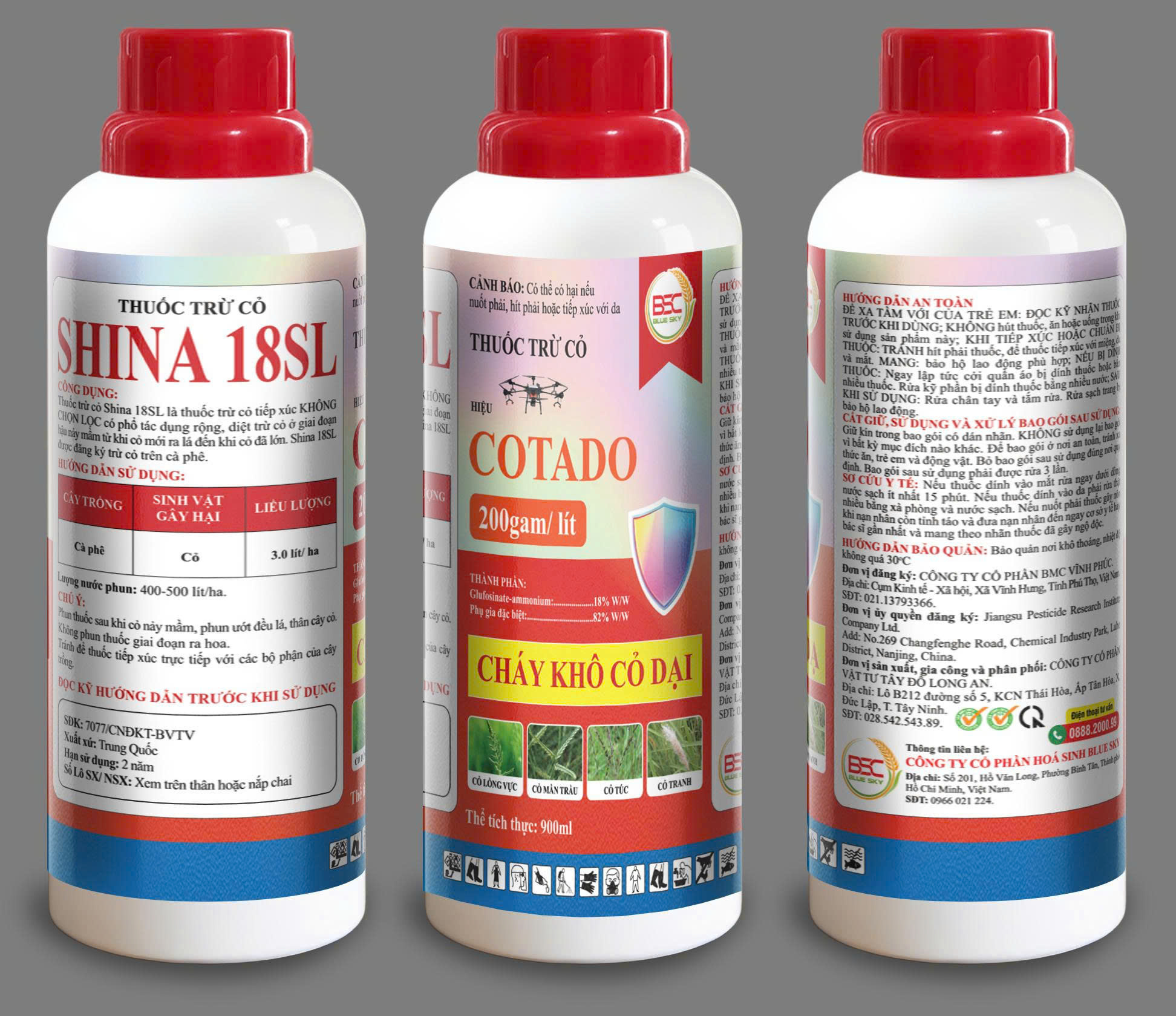 • Thuốc trừ cỏ BSC COTADO (SHINA 18SL) là thuốc cỏ lưu dẫn KHÔNG chọn lọc có phổ tác động rộng, diệt trừ cỏ ở giai đoạn hậu nẩy mầm từ khi cỏ mới ra lá đến khi cỏ đã lớn